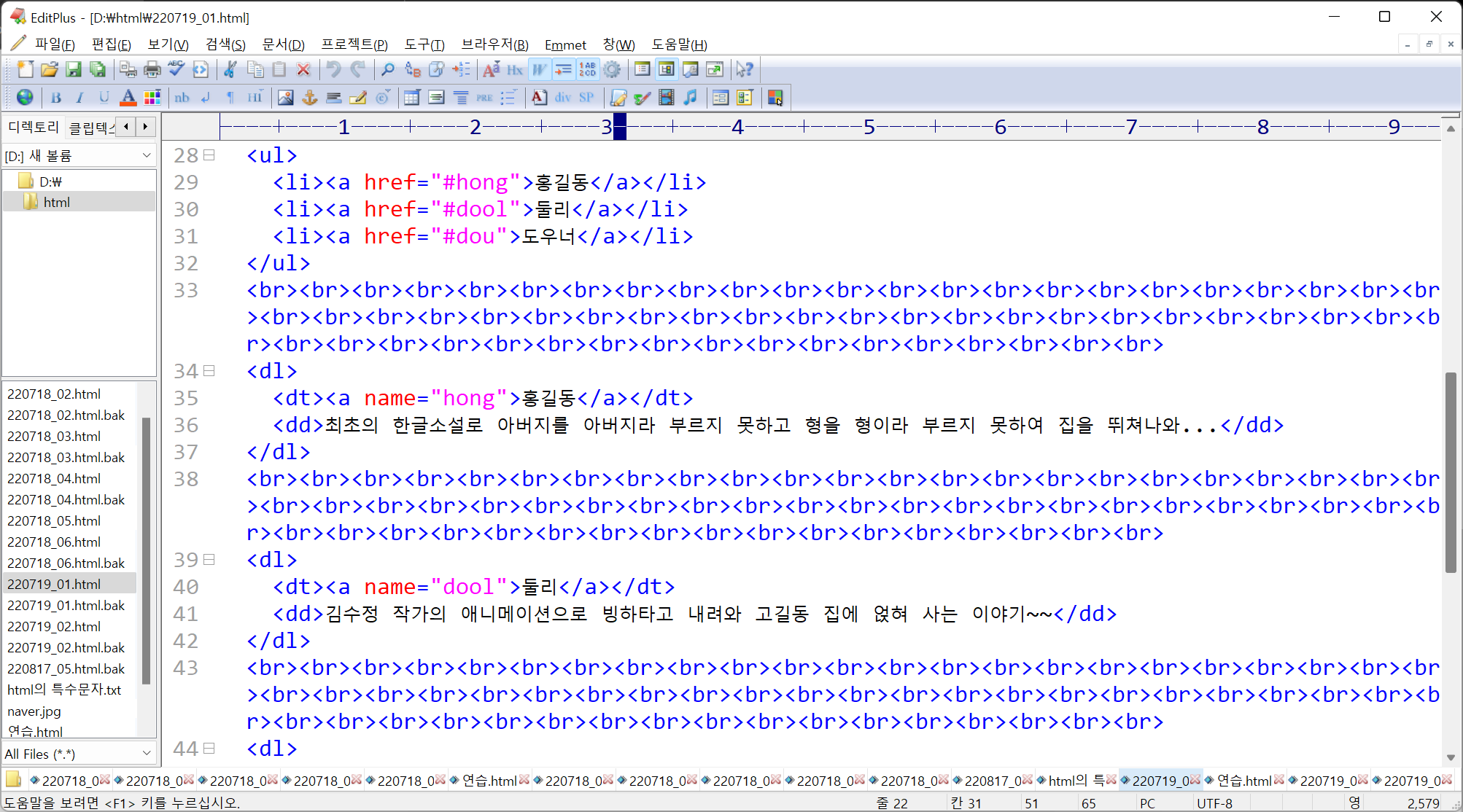 <dt>홍길동에 <a name="hong">홍길동</a> 를 지정하고,