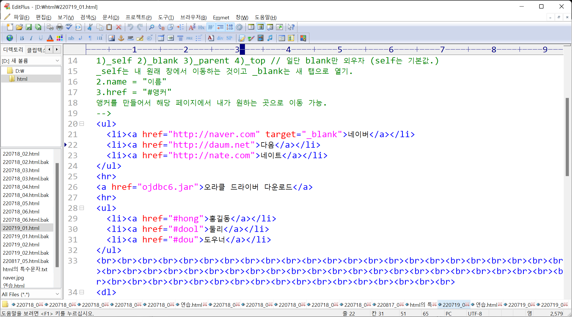 href="#앵커" => 앵커를 만들어서 해당 페이지에서 내가 원하는 곳으로 이동 가능.
