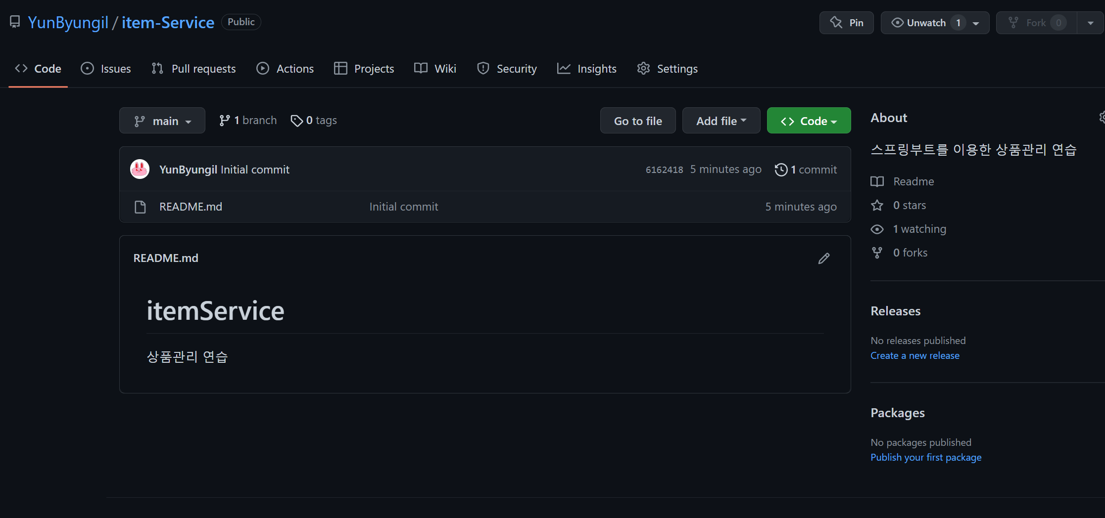 1. Git Repository를 먼저 생성한다.