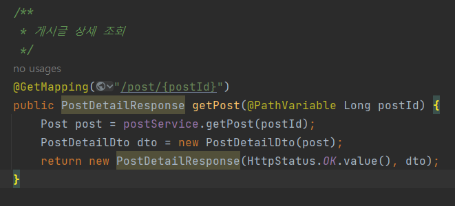 PostDetailDto로 변환하는 작업을 할 때 문제가 발생한다.