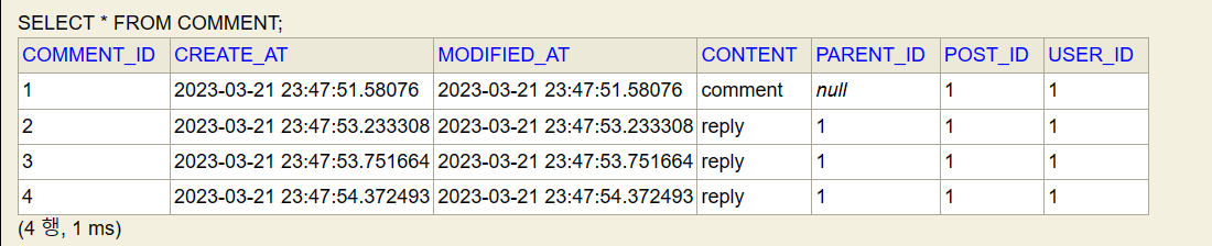 유튜브 댓글처럼, 대댓글을 불러오기 위한 쿼리를 생성했다.