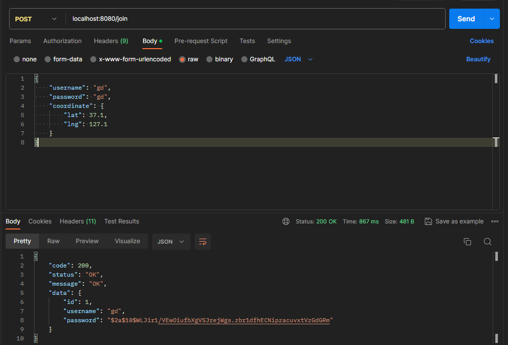 회원가입을 진행할 때, 위도와 경도값을 받고 그 받은 값을 Coordinate 객체에 저장을 한 후 Service에 보내는데,