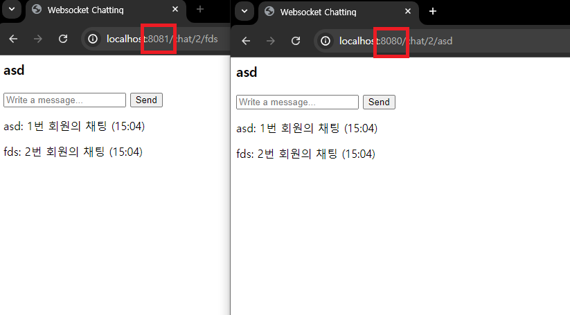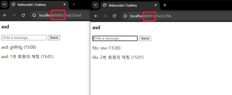 Channel을 이용하였기 때문에 다수의 서버일 경우 채팅을 공유할 수 있습니다.