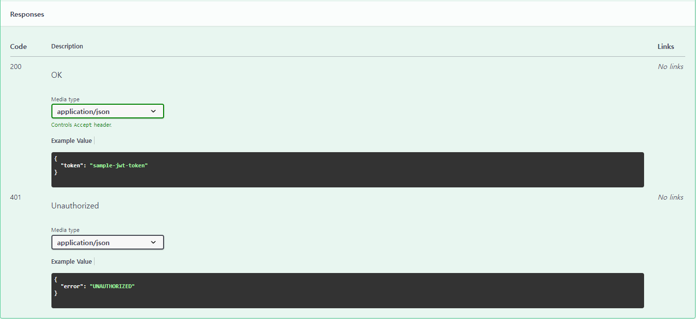 new MediaType().example("{\"token\":\"sample-jwt-token\"}"))));