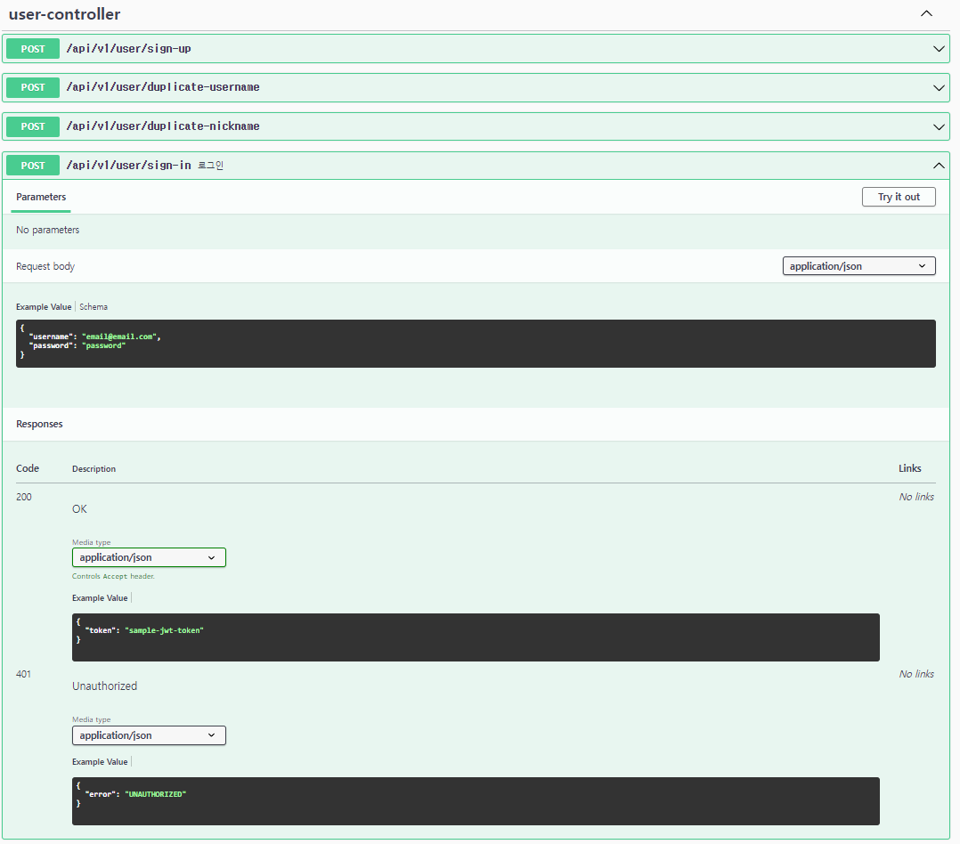 Swagger 문서에 나타났음에도 불구하고 아직 문제가 해결되지 않았습니다.